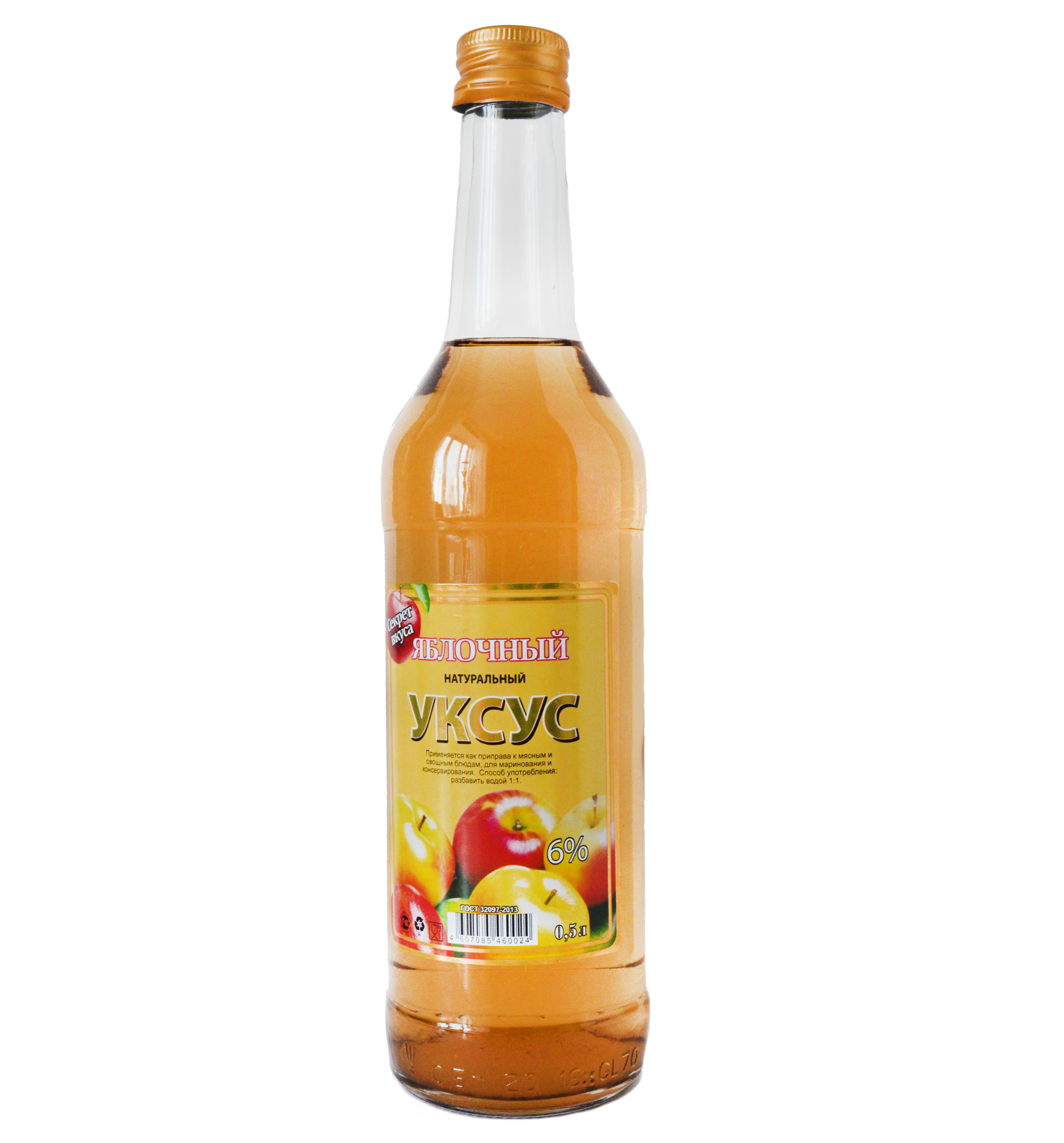 Уксус яблочный натуральный, стекло, 6%, 0,5 л