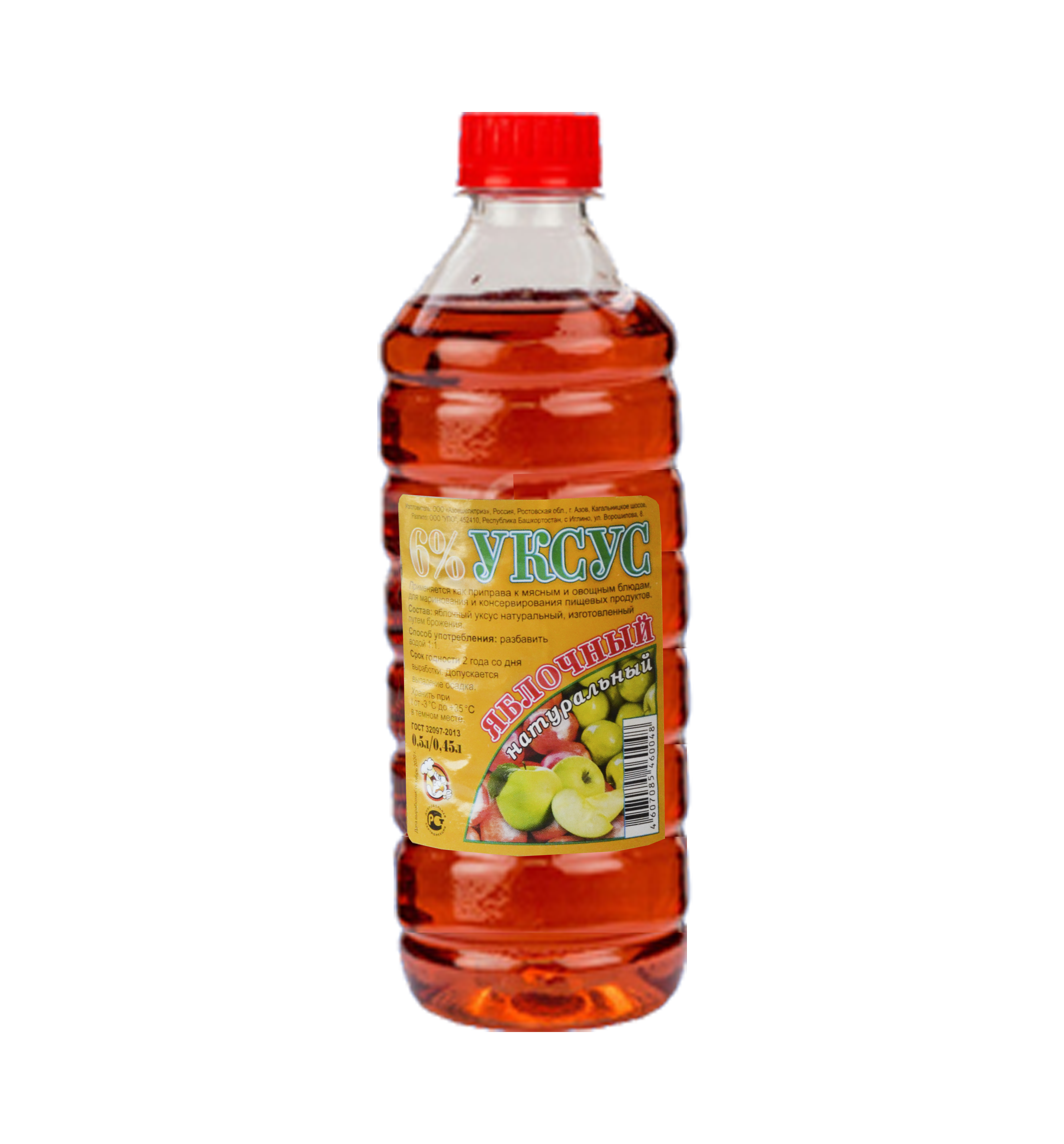 Уксус яблочный натуральный, пэт, 6%, 0,5/0,45 л